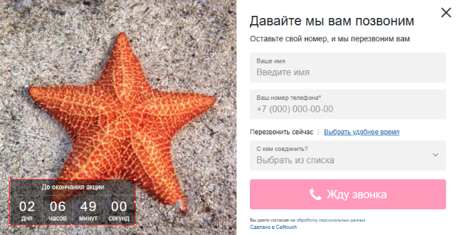 Таймер акции — чтобы отобразить срок действия предложения на форме.