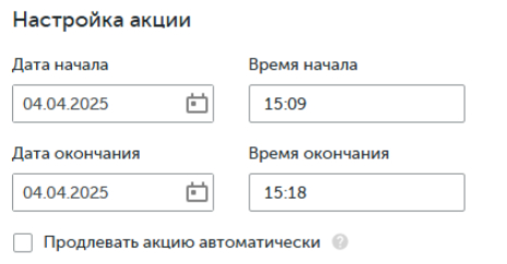 Если вы запускаете акцию на определённый срок (например, на месяц) и хотите, чтобы после её завершения виджет автоматически отключился, необходимо настроить оба параметра: