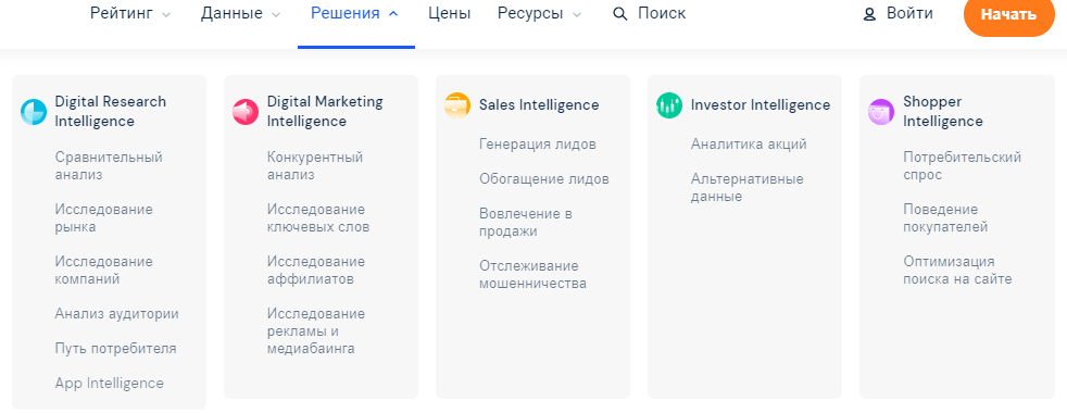 Главная | Блог | Темы | Маркетинг | Анализ конкурентов при помощи SimilarWebАнализ конкурентов при помощи SimilarWeb 9 августа 2022 20 мин на чтение 19 495 маркетинг маркетинг Юлия УсачеваРедактор блога Calltouch Содержание Нет времени читать? SimilarWeb предлагает опции и фильтры, которые упрощают анализ конкурентов, а именно: их сайтов, соцсетей, приложений, целевых страниц, рекламных кампаний. Среди клиентов этого сервиса eBay, Microsoft, Adobe, Lenovo, Google, Adidas, Walmart, Booking.com. Рассказываем, почему сервис так популярен и какими основными функциями и возможностями обладает.Что такое SimilarWeb и кому он подойдетSimilarWeb — сервис для анализа различных сайтов, приложений, площадок для размещения рекламы, которые принадлежат конкурентам. Его используют веб-аналитики, маркетинговые агентства, а также компании, которые развивают свои онлайн-сервисы. Для владельцев небольших сайтов подойдет бесплатная версия SimilarWeb, однако опытным специалистам ее будет недостаточно. Чтобы проводить более глубокую аналитику, оплатите полный набор инструментов.SimilarWeb получает информацию для анализа из следующих источников:Global Panel Data — данные о пользователях, которые приходят на сайты из приложений, ПО или плагинов, разработанных SimilarWeb и их партнерами;Global ISP Data — сведения, которые предоставляют провайдеры-партнеры SimilarWeb;Public Data Sources — общедоступные индексированные данные из миллионов приложений;Direct Measurement Data — сведения из Google и Adobe Analytics, а также от разработчиков приложений. SimilarWeb собирает обезличенную информацию, которую предоставляют всемирно известные компании легально и напрямую.В базе сервиса более 200 категорий сайтов различных тематик. Кликните на любую интересующую, чтобы узнать основные показатели 50 топовых площадок. Как работать в SimilarWeb?Для начала разберем интерфейс:ИконкаДействиеВыберите период, который будете анализировать, сравнивать с предыдущимиВыберите страну для анализаУкажите вид устройства: мобильное или десктопноеНастройте фильтр: десктопный или мобильный трафикСкачайте информацию в формате ExcelЭкспортируйте таблицы с данными в PowerPointСкачайте отчеты в PDFЭкспортируйте диаграммы и другие изображения для аналитики в PNGОтправьте графики другому пользователю в соцсетьОставьте определенные фильтры, чтобы на странице отображались конкретные показателиДобавьте дополнительный дашборд или данные в уже существующий Данные, которые будут доступны в SimilarWeb:показатель посещаемости сайта;список каналов трафика;геоположение, демография и интересы пользователей;список ключевых слов, с помощью которых находят сайт;показатели вовлеченности пользователей: длительность сеанса, процент отказов, количество просмотренных страниц за сеанс.Учитывайте, что SimilarWeb предоставляет информацию о трафике с небольшими погрешностями.Чтобы начать использовать сервис, выполните следующие действия:Зарегистрируйтесь: зайдите на сайт SimilarWeb, нажмите «Начать» вверху справа, выберите колонку «Диджитал маркетинг».Заполните форму регистрации: введите имя, фамилию, адрес рабочей электронной почты, пароль. Активируйте демоверсию на 7 дней, чтобы протестировать функции. В поле «Search» введите URL сайта и выберите его из списка.Откроется главный дашборд SimilarWeb. Внесите настройки, установите фильтры.Выберите временной интервал для анализа. В бесплатной версии доступен период до трех месяцев, в платной 