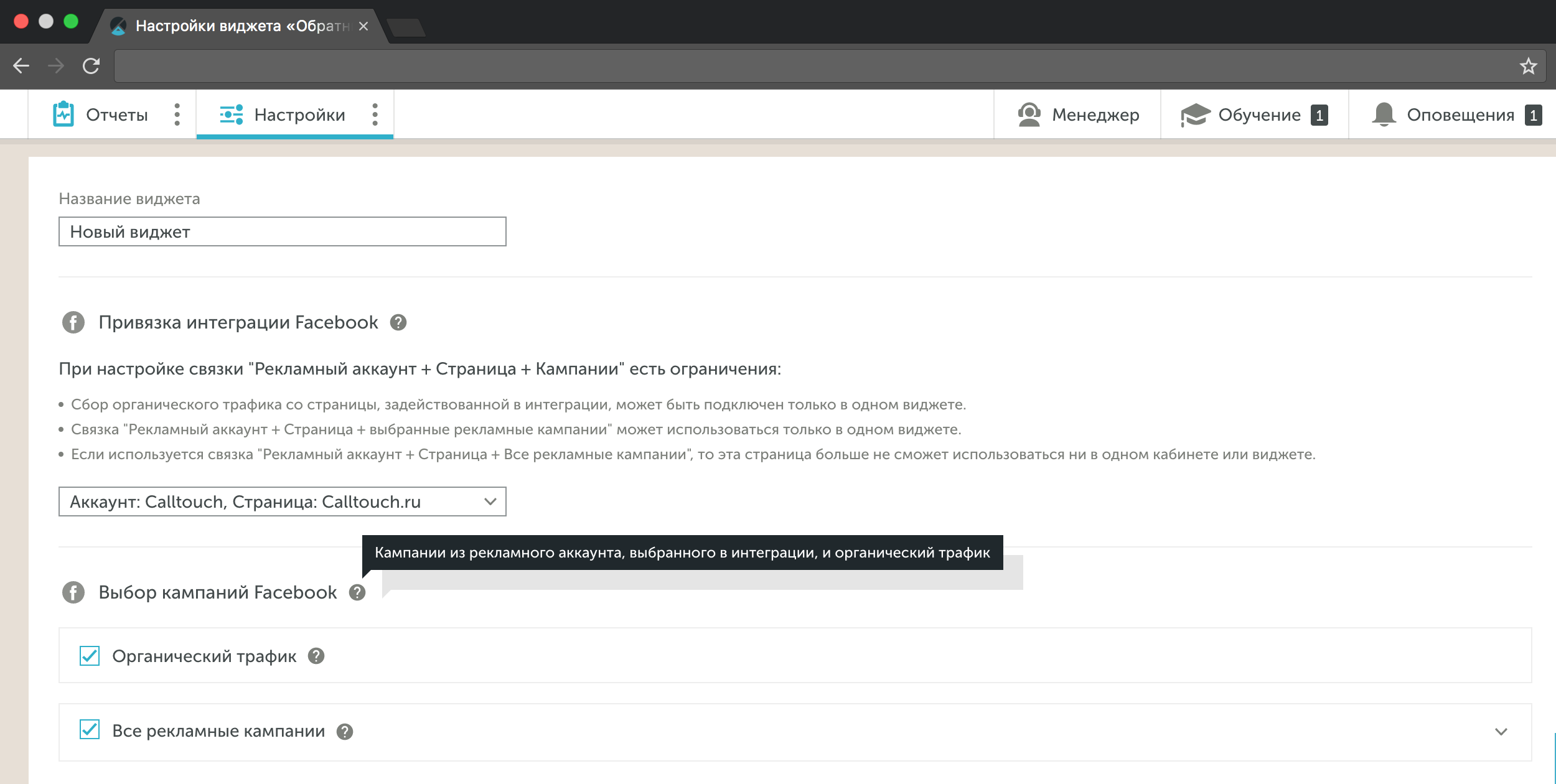 Главная | Блог | Продукты Calltouch | Обновления обратного звонкаОбновления обратного звонка 26 апреля 2018 8 мин на чтение 5 456 Обратный звонок Обратный звонок Валерия ЗаворинаПродакт-менеджер Calltouch Содержание Нет времени читать? В апреле мы добавили несколько интересных фич для Обратного звонка, благодаря которым работа с ним стала еще удобнее и эффективнее. Теперь можно планировать звонки вручную, копировать дизайн с рабочей формы времени на нерабочую и раздельно управлять mobile и desktop. Рассказываем, как все это настроить в вашем личном кабинете и какие преимущества вы получаете. Планируйте повторные звонки вручнуюЧто сделалиМы добавили ручное планирование повторных звонков. Теперь рядом с каждым неудачным вызовом отображается соответствующая иконка. Кликнув на иконку, вы увидите меню, в котором можно проставить время и дату повторного звонка.Зачем это нужноЧаще всего неудачными вызовы бывают потому, что абоненты, оставившие заявки, не берут трубку. Причины могут быть абсолютно разные, но это не значит, что звонок для клиента потерял свою актуальность.Для устранения этого в Calltouch уже предусмотрена возможность настройки сценариев для повторных вызовов. Можно установить до 7 повторных попыток дозвона по неудачным звонкам с заданным промежутком времени. Но иногда, даже после 7 звонков, абонент может не снять трубку.Ручное планирование позволяет самостоятельно определить время и запланировать звонок онлайн, если ваш колл-центр еще работает, либо на следующий рабочий день, выбрав дату в календаре. Обратный звонокУвеличивайте количество обращений с сайтаНовым клиентам 50 минут бесплатно ПодробнееКак это работаетНастройки графика работы и номера переадресации колл-центра подтягиваются из виджета, который инициировал звонок первоначально. После создания заявки на повторный звонок в Журнале звонков будет отображаться информация о дате и времени повторного набора.Повторный звонок, запланированный через Журнал звонков, совершается однократно. Если попытка опять оказалась неудачной, вы можете вручную, совершив те же действия, планировать дозвон неограниченное количество раз.Обратите внимание, что назначить ручное планирование можно только тем звонкам, которые не являются частью цепочки вызовов.Например, если у вас существует сценарий из 3-х вызовов, а произошло только две попытки и третья находится в очереди, иконки планирования по таким звонкам не будет, пока не завершится сценарий.Посмотрите, как это работает в личном кабинете.Обновление виджета Facebook* – работа с фильтром по кампаниям* (продукт компании Meta, которая признана экстремистской организацией)Недавно мы анонсировали о внедрении обработки заявок из Facebook* (продукт компании Meta, которая признана экстремистской организацией) через обратные звонки с помощью нашего виджета. Мы пошли еще дальше и фундаментально переработали логику работы с Facebook* (продукт компании Meta, которая признана экстремистской организацией). Теперь вам доступна возможность создавать виджеты обратного звонка на уровне рекламных кампаний.Как это работаетЧтобы передавать лиды из Facebook* (продукт компании Meta, которая признана экстремистской организацией), необходимо настроить интеграцию: Личный кабинет → Настройки → Интеграции → Facebook* (продукт компании Meta, которая признана экстремистской организац