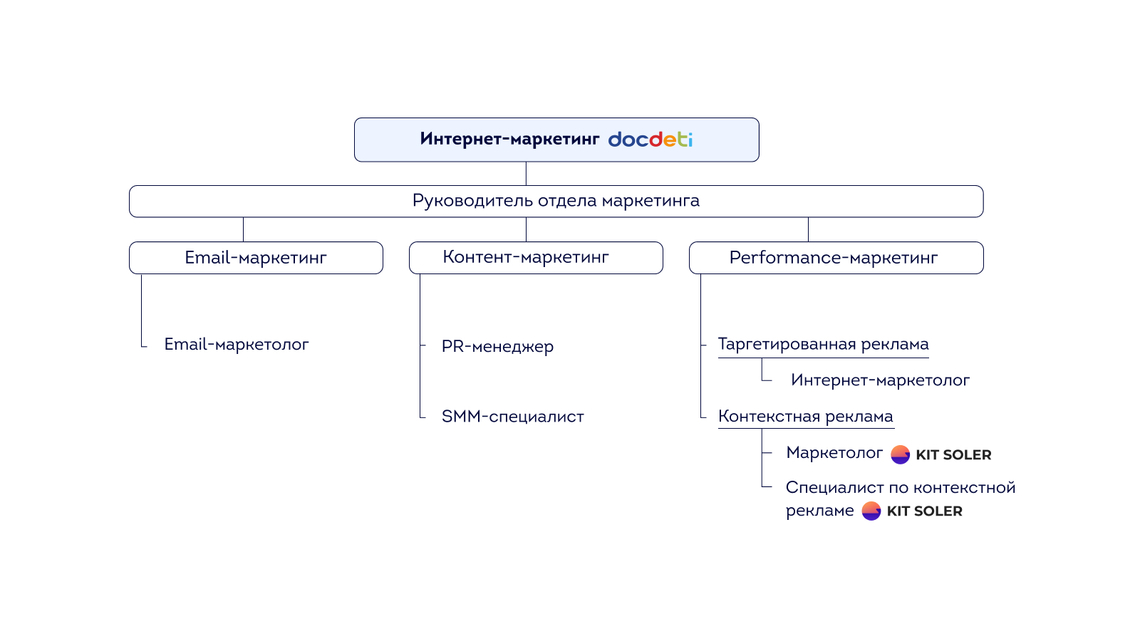 Главная | Блог | Кейсы | Медицина | DocDeti и KIT SOLER: как сначала сформировать знание о сложном продукте, а после увеличить количество обращений в 1,5 разаDocDeti и KIT SOLER: как сначала сформировать знание о сложном продукте, а после увеличить количество обращений в 1,5 раза 6 мая 2022 16 мин на чтение 19 913 KIT SOLERАгентство комплексного интернет-маркетинга DocDetiДетская клиника доказательной медицины Содержание Нет времени читать? Эксперты по маркетингу клиники DocDeti и агентства KIT SOLER делятся прикладными советами по контент- и перформанс-маркетингу для медицины и экономике привлечения пациентов. Из этого кейса вы узнаете о рабочих инструментах контекстной рекламы для роста количества обращений и уменьшения их стоимости. О клиенте DocDeti – сеть детских клиник доказательной медицины с 4 филиалами в Москве, онлайн и офлайн приёмами: около 250 врачей и 100 000 пациентов. В 2022 году планируется открытие ещё 1 клиники в Москве. Предыстория Доказательная медицина основана на использовании результатов клинических исследований для выбора лечения. Высококвалифицированные врачи в DocDeti работают по международным стандартам, назначают процедуры и препараты только с доказанной эффективностью. Каждому ребёнку уделяется особое внимание, поэтому приём может длиться около 60 минут. Такая бизнес-модель возможна при достаточно высокой стоимости первичного осмотра. Поэтому для DocDeti важно сначала донести ценности доказательной медицины, а после обратить внимание аудитории на клинику и её врачей. Бюджеты распределяются по логике воронки: 50% на brandformance и 50% на performance. Маркетинговая воронкаКоманда Наша стратегия1. Развиваем узнаваемость клиники и личные бренды врачейВ коммуникации с потенциальной аудиторией DocDeti развенчиваем мифы о медицине, отвечаем на актуальные вопросы, показываем отношение к пациентам в наших клиниках. Кроме методики в медицине важен личный бренд врача, так как это человек, которому пациент доверяет своё здоровье. И они это понимают, поэтому активно участвуют в создании контента для площадок. Каналы коммуникации с аудиториейСоцсетиТранслируем полезную для родителей информацию в удобных форматах. Instagram*Публикации выходят ежедневно. 70% из них – полезный контент. С врачами проводим прямые эфиры, используем форматы Stories и Reels для повышения уровня узнаваемости. Видео набирают от 10 000 до 240 000 просмотров. Мы регулярно коммуницируем с подписчиками. Они могут напрямую обратиться к главному врачу или директору и обязательно получат обратную связь. TikTokЗдесь делаем акцент на развлекательном контенте, но обязательно с пользой для родителей. Например, показываем, как правильно лечить ОРВИ или какие препараты стоит избегать. Telegram-каналЗа основу контента берутся исследования из достоверных медицинских источников вроде Lancet и PubMed. Адаптируем научные статьи под запросы аудитории. Дополнительно в канале можно получить ответы на медицинские вопросы и записаться на приём.СМИ Мы сотрудничаем с такими интернет-изданиями, как Flacon, НЭН, Chips Journal, Hipo. Для них наши врачи дают экспертные комментарии и интервью. База знаний Это раздел на сайте, где родители могут узнать новости, найти статьи и заметки от специалистов DocDeti. Он создан для генерации органического трафика. Контент для него берётся из Instagram* и адаптируется под сайт.Женские форумыМногие мамы в поиске ответов на пробле