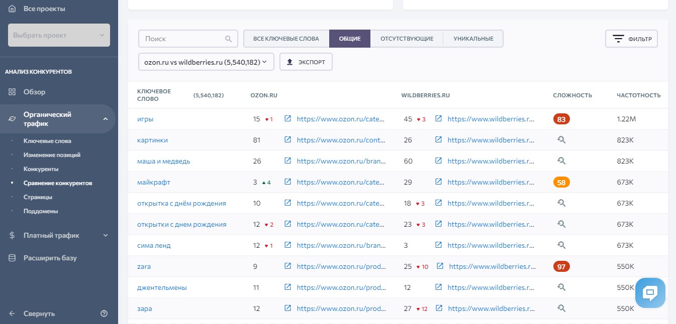 Главная | Блог | Темы | Маркетинг | Как анализировать конкурентов в органике. Самый подробный гайдКак анализировать конкурентов в органике. Самый подробный гайд 21 мая 2021 42 мин на чтение 25 188 SEO маркетинг SEO маркетинг Марья КазаковаHead of Outreach в SE Ranking Содержание Нет времени читать? В условиях огромной конкуренции почти во всех сферах деятельности человеку приходится отвоевывать свое место под солнцем. Существует, по крайней мере, три фактора, благодаря которым можно стать первым в своей нише, – безукоризненный продукт, правильное и эффективное продвижение и грамотный маркетинг.Однако предоставить потребителю что-то действительно отличное от предложений конкурентов – задача непростая. Для этого нужно выявить свои сильные и слабые стороны, детально изучив и проанализировав бренд, предлагающий покупателю то же, что и вы. Другими словами, чтобы улучшить продукт, вам просто не обойтись без анализа и тщательного мониторинга своих прямых конкурентов. Это даст вам представление об их стратегии продвижения продукта и поможет сформировать собственное видение и миссию бизнеса. CalltouchПривлекайте, конвертируйте и анализируйте ваших клиентовПлатформа омниканального маркетинга Подробнее 1. Зачем проводить анализ конкурентов перед продвижением своего сайта?Представьте, что вы запускаете новый продукт. Вам нужно понимать рынок, изучить продукты и услуги, которые предлагают конкуренты. Это поможет вам идентифицировать ваших потенциальных клиентов и лучше ориентироваться на них.Владельцы бизнеса сегодня имеют более широкие возможности для формирования базы потенциальных клиентов, однако они подвергаются огромной конкуренции со стороны брендов всего мира. Такое широкое распространение заставляет компании бороться не только за свою прибыль, но и как можно более точно определять собственных конкурентов.Сайты конкурентов – ценный источник информации, где можно перенять опыт и реализовать наиболее удачные решения в своем проекте. Но здесь также необходимо знать, какую информацию следует искать и как использовать ее для получения конкурентного преимущества. Это во многом зависит от типа маркетинговых стратегий, наиболее эффективных в вашей отрасли, и тех усилий, которые необходимо приложить для их улучшения:Органический трафик. Если, например, ваш бизнес зависит от органического продвижения и вы хотите улучшить свой рейтинг в поисковых системах, используя SEO-инструменты.PPC реклама. Если платный трафик будет фундаментальной частью вашей стратегии.Демография клиентов и сегменты рынка. Если ваша основная цель – решить, на каких клиентов ориентироваться. Здесь вы можете обнаружить, что упускаете возможности ведения деятельности на крупном рынке, на который и не подумали бы ориентироваться.Поиск новых сегментов клиентов. Вы можете использовать инструменты конкурентов, чтобы определить базу клиентов для своего будущего расширения. Однако для начала нужно будет сопоставить эту демографическую информацию с собственными целями брендинга.1.1. Что можно проанализировать?Сравнение трафика. Поможет узнать, откуда приходят на сайт посетители и какой канал продвижения является наиболее эффективным.Сравнение контента. Определение контентной стратегии, анализ публикаций и структуры текста, информативность и читабельность.Сравнение вн