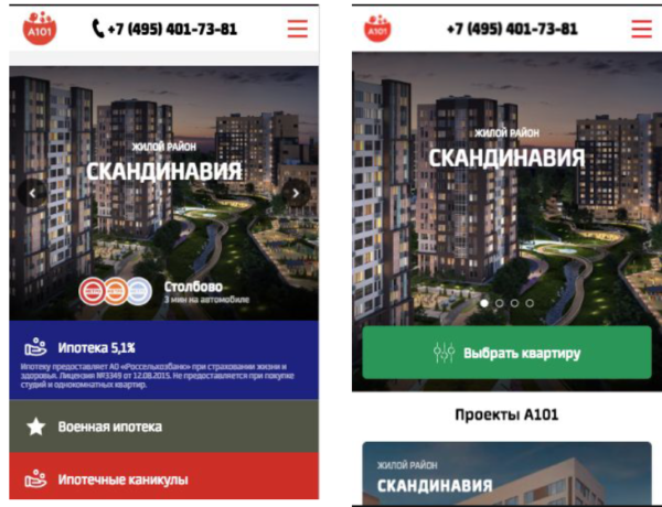 Главная | Блог | Кейсы | Недвижимость | Как работают легкие страницы: CPA ниже, продажи ГК «А101» вышеКак работают легкие страницы: CPA ниже, продажи ГК «А101» выше 26 ноября 2019 10 мин на чтение 39 852 Группа компаний A101 Содержание Нет времени читать? ГК «А101» рассказали, как снизили стоимость целевого звонка на 19,7%, а в разрезе периодов увеличили количество обращений на 38,1%.О чем речьГК «А101» – инвестиционно-строительный холдинг, в портфеле реализованных проектов которого порядка 2,5 млн кв. км недвижимости – жилья, объектов социально-бытовой, образовательной и коммерческой инфраструктуры. Группа занимает второе место по объемам текущего строительства в Москве, реализуя комплексные проекты развития территорий Троицкого и Новомосковского округов столицы. В их числе – ЖК «Скандинавия», о котором и пойдет речь в кейсе.Каналы онлайн-продаж стремительно адаптируются под мобильных пользователей, но одной только парадигмы mobile-first иногда бывает недостаточно. Даже мобильные версии сайтов могут быть тяжеловесными и медленными (а им это вовсе непростительно), поэтому качественные решения требуют комплексного подхода с точки зрения как разработки, так и дизайна.В ГК «A101» нам рассказали, как, проработав техническую составляющую и юзабилити мобильного сайта, компания достигла ощутимого улучшения показателей продаж квартир.Первые трудностиПериод реализации объектов и цикл отдельной сделки в сфере недвижимости — процессы длительные, поэтому особое внимание должно уделяться customer journey.Customer journey – путь, который проходит клиент, начиная от потребности до момента покупки или превращения в фаната бренда.Трудности работы в онлайне были связаны с анализом эффективности воронки. Изначально для всех сайтов использовался один код отслеживания. Очевидно, поступающие данные не были должным образом структурированы, и не удавалось составить ясную картину происходящего.Такие настройки представляли собой препятствие для следующего шага — ведь для того, чтобы понять, куда двигаться, надо сначала оценить обстановку.Первый шаг к решению проблемыБлагодаря совместной работе с командами Google и Calltouch базовая проблема была решена. Анализ трафика и поведения пользователей обрёл форму и позволил принимать решения:Данные с сайтов теперь лучше структурированы и отображаются в раздельных представлениях Google Analytics.Анализ звонков приносит существенно больше информации о лидах после установки коллтрекинга.Следующий вопрос заключался в повышении эффективности продающих страниц. Как их переработать, чтобы получить реальный выхлоп: снизить расходы и увеличить прибыльность?Большой путь к меньшему CPAМаркетологи компании сформулировали гипотезу, согласно которой дальнейшая оптимизация мобильных страниц сайта поможет:Увеличить количество звонковСнизить их стоимостьОптимизацию провели с двух сторон: задействовав более эффективные веб-технологии и предложив пользователям максимально понятный чистый интерфейс.Внедрение AMP-страницДобиться облегчения страниц и улучшения юзабилити можно различными путями, в том числе, совершенно нестандартными и специфическими вроде микро-лендингов в Instagram и воронок продаж в мессенджерах. Но в данном случае было принято решение в пользу признанного подхода с измеримой эффективностью — AMP-страницы Google.Технология позволяет с пом