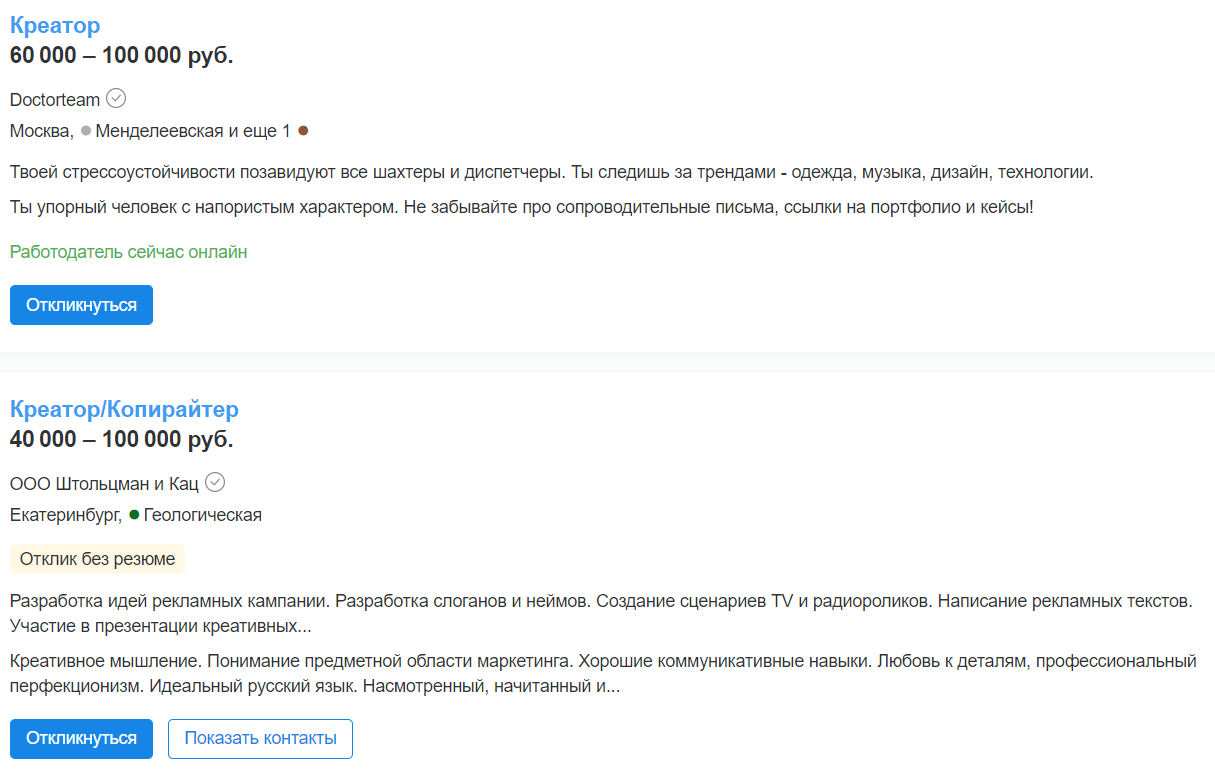Главная | Блог | Темы | Маркетинг | Кто такой креатор и чем он занимаетсяКто такой креатор и чем он занимается 9 сентября 2022 11 мин на чтение 22 267 контент контент Юлия УсачеваРедактор блога Calltouch Содержание Нет времени читать? Чтобы привлечь внимание аудитории и выделиться на фоне конкурентов, нужны креативные идеи. За их разработку и воплощение в жизнь отвечает креатор. Creator в переводе с английского языка означает «создатель».Эта статья для тех, кто мечтает о творческой работе со стабильным доходом без привязки к офису. Рассказываем, кто такой креатор, что он делает, как им стать. Маркетинг Читайте также: Что такое черный пиар, и стоит ли его использовать Что такое черный пиар, и стоит ли его использовать Зачем нужен креаторКреатор — это специалист, который генерирует яркие, интересные и креативные идеи. Он не использует готовые шаблоны, а воплощает в жизнь собственные уникальные разработки. Контент, который создает креатор, используют в бизнесе и маркетинге, например для съемки рекламных роликов, запуска инфопродуктов и публикаций в социальных сетях. Если вам нужно эффективно отстроиться от конкурентов и быстро привлечь внимание аудитории, яркие нешаблонные идеи будут кстати.Креаторы работают самостоятельно или в командах. У крупных брендов — Netflix, Coca-Cola, L’Oreal — есть собственные креативные группы. Они генерируют идеи для запуска новых продуктов, создания рекламных коллабораций, внедрения инновационных маркетинговых стратегий.Отслеживайте эффективность своих маркетинговых активностей с помощью сквозной аналитики Calltouch. Она объединяет данные со всех рекламных площадок и из CRM в наглядные отчеты. Всю нужную для анализа информацию вы увидите в одном окне. На ее основе вы сделаете точные выводы о том, какой результат вам приносит каждый рекламный канал. Сквозная аналитикаОценивайте эффективность всех рекламных кампаний в одном окне от клика до ROIВкладывайте в ту рекламу, которая приводит клиентов ПодробнееПлюсы и минусы профессииКакие плюсы имеет профессия креатора:Взаимодействие с творческими людьми. Креативщики часто работают с дизайнерами, блогерами и режиссерами.Свобода от офиса. Креаторы могут работать удалено или даже на фрилансе.Хороший доход. Успешные креаторы зарабатывают от 50 000 рублей в месяц. Чем объемнее портфолио с интересными кейсами, тем выше зарплата.Минусы профессии креатора:Отсутствие четкого графика работы. Иногда бывают простои, и нередко специалисты вынуждены работать по ночам и выходным, часто случаются переработки.Обилие правок и замечаний. Креаторы работают с опорой на бриф от заказчика. Но их идеи не всегда совпадают с видением клиента, который часто требует дорабатывать проект.Кому необходим креаторРадиостанции, телевизионные каналы, издательские дома, студии веб-дизайна и программирования — креаторы нужны везде. Они генерируют интересные и полезные идеи, как сделать продукт по-настоящему интересным аудитории.За услугами специалистов также обращаются:Крупные бренды. Креативная реклама вызывает у целевой аудитории эмоциональный отклик и формирует в подсознании потребителя положительный и устойчивый образ бренда.Блогеры. Лидеры мнений готовы платить за креативный контент, чтобы удержать подписчиков. Креаторы создают для блогеров оригинальные сценарии для постов, сторис и обзоров.О