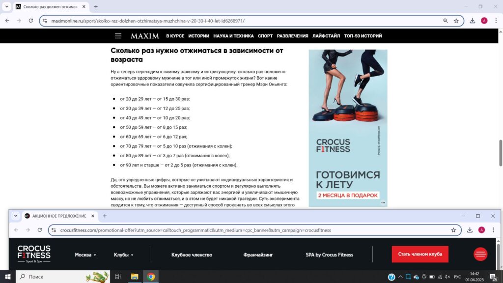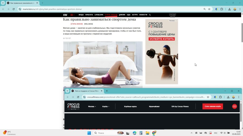 Главная | Блог | Кейсы | Фитнес | Охват взят: раскачали сеть премиальных фитнес-клубов с использованием программатик-рекламы. Кейс Crocus FitnessОхват взят: раскачали сеть премиальных фитнес-клубов с использованием программатик-рекламы. Кейс Crocus Fitness 6 ноября 2025 10 мин на чтение 33 сквозная аналитика Программатик сквозная аналитика Программатик Нина ОпалькоСтарший редактор Calltouch Содержание Нет времени читать? Пока одни вручную управляют кампаниями и подолгу согласовывают рекламные размещения на площадках, другие автоматизируют маркетинг программатик-рекламой и получают высокие результаты. О том, как инструмент помог вывести на рынок столицы новую сеть премиальных фитнес-клубов и выполнить план по ключевым показателям, рассказываем в новом кейсе от Crocus Fitness.Crocus Fitness — международная сеть фитнес-клубов премиум-класса. Это элитные клубы нового формата, где большое внимание уделяется инновациям:Тренажеры последнего поколения.Новые направления спортивных занятий.Большой ассортимент авторских групповых программ из 44 направлений, включая танцевальные тренировки.Персонализированные индивидуальные занятия.В фитнес-клубах сети предусмотрены залы для игрового спорта, пилатеса, йоги, занятий танцами и боевыми искусствами, бассейны, зоны для релаксации, фитобары и кафе. Тренерский состав включает мировых призеров и олимпийских чемпионов. Члены клубов сети могут не только заниматься спортом, но и посещать эксклюзивные мероприятия в Crocus Fitness.В чем проблемаВ Crocus Fitness хотели увеличить post-click и post-view конверсии, а также поднять количество обращений. Но продвижение фитнес-клубов премиум-класса имеет ряд сложностей, обусловленных высоким уровнем конкуренции и особенностями целевой аудитории. В Crocus Fitness понимали, что здесь не обойтись стандартными стратегиями для масс-сегмента. Премиум требует создания уникальной концепции с фокусом на индивидуальный подход и эксклюзивные услуги. А маркетинговые кампании должны подчеркивать преимущества бренда и цеплять премиальную аудиторию. Одна из ключевых особенностей — зона присутствия, в которой необходимо продвинуть проект. Поскольку сеть клубов находится в Москве, важно учитывать и специфику рынка столицы в целом. Это крупнейший рынок услуг премиум-класса в России, в котором уже представлены известные международные бренды и крупные отечественные сети клубов. Внимание потенциальной целевой аудитории уже приковано к тем, кто «на слуху», а новому игроку рынка важно построить стратегию, чтобы войти в список тех, о ком говорят.Цели рекламной кампанииCrocus Fitness определили KPI по post-click и post-view конверсиям: (NEW) Все формы (Автоцель) — 110,Звонок — 50.При этом средние постклик показатели должны быть в следующих пределах: отказы — 35%, индекс глубины просмотра сайта — 1,5,время на сайте — 01:30, доходимость — 60%.Кроме того Crocus Fitness было важно фиксировать все конверсии по целям «звонок» и «отправка формы».Как достичь поставленных целейЭффективный способ достичь желаемых результатов — использовать Programmatic-рекламу. Во многом выбор инструмента был определен главным фокусом стратегии на брендформанс.В связке со сквозной аналитикой программатик показывает высокие результаты эффективности, поскольку дает возможность отслеживать ключевые показатели в сводных отчетах, оценивать конверсионность разных источников и с