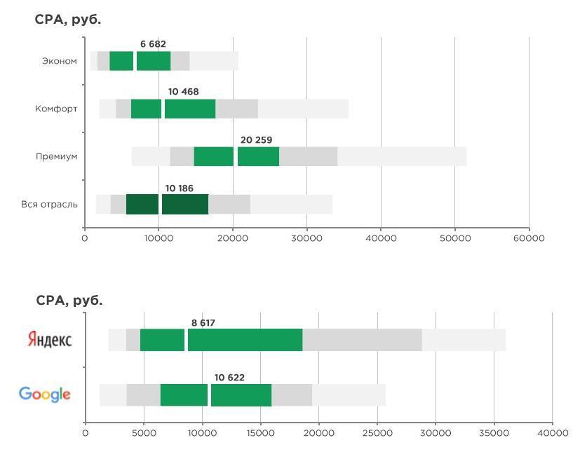 Главная | Блог | Исследования | 2020 | Paid Search Data Driven Approach 2020: НедвижимостьPaid Search Data Driven Approach 2020: Недвижимость 7 июня 2020 24 мин на чтение 11 238 Елизавета Ширшова Содержание Нет времени читать? Главные отличия сферы недвижимости – долгий цикл покупки, высокая конкуренция, большие бюджеты на продвижение, низкая частота обращений и стоимость привлечения лида, достигающая десятков тысяч рублей. В начале мая E-Promo опубликовало исследование поисковой рекламы Paid Search Data Driven Approach 2020. Разбираем ключевые показатели для индустрии недвижимости и рассказываем, как вести рекламные кампании так, чтобы оставаться конкурентоспособным. CalltouchПривлекайте, конвертируйте и анализируйте ваших клиентовПлатформа омниканального маркетинга Подробнее Исходные данныеМы проанализировали рекламные кампании на поиске Яндекс.Директа и Google Ads за 2019 год. Среди них рекламные кампании:Девелоперов из Москвы, Санкт-Петербурга и других регионов России, которые специализируются на продаже жилой и коммерческой недвижимости разных классов на всех этапах строительства – от котлована до готовых квартир;Девелоперов апартаментов в Москве;Крупных арендодателей, специализирующихся на офисных площадях в формате коворкинга и private office.В качестве целевых действий при анализе CPA мы выбрали целевые звонки – уникальные входящие звонки от потенциального клиента компании, прошедшие скоринг по качеству. Даже при использовании качественных сервисов коллтрекинга возможны звонки по ошибке или от уже звонивших, желающих задать дополнительные вопросы. Мы ориентировались только на целевые звонки, чтобы показать реалистичную ситуацию на рынке недвижимости.Применяемая модель атрибуции – последний непрямой клик, что обусловлено частотой использования и распространенностью подобной модели.Поисковая реклама на разных этапах воронки продажПоисковую рекламу часто используют только внизу воронки, для работы с теплым спросом, и это не совсем оправданно. На схеме показано, что поисковая реклама работает на всех этапах, выполняя разные функции в зависимости от цели. Важно вести работу на каждом этапе, чтобы не потерять потенциального клиента при его переходе на следующую стадию продаж. Роль Paid Search на разных этапах коммуникацииФормируйте узнаваемость бренда и интереса к нему наверху воронки, отрабатывайте интерес на среднем уровне и помогите пользователю выбрать ваше предложение на нижнем этапе. Для этого достаточно правильно выбрать таргетинги и проработать УТП – тогда вы сможете грамотно выстроить коммуникацию с пользователем. Как работать с УТПВ условиях высокой конкуренции на поиске рекламодателю важно уделять больше внимания используемым УТП при коммуникации с потребителем, чтобы грамотно отстраиваться от конкурентов и выделяться на их фоне. На каждом этапе воронки продаж пользователя интересуют разные аспекты, которые важно транслировать в текстах объявлений, чтобы привлечь покупателя и «подогреть» спрос.Мы проанализировали поисковую выдачу на примере топ-5 застройщиков (более 20 тыс. объявлений), разделили запросы на разные типы и выделили наиболее популярные УТП. Что мы увидели:Для общих и ГЕО запросов в текстах часто используется время до метро, указание расположения объекта. Для конкурентных запросов рекламодатели указывают информацию о типе отделки, цене и экол