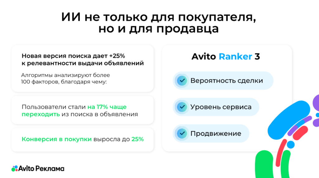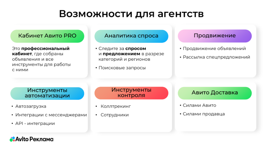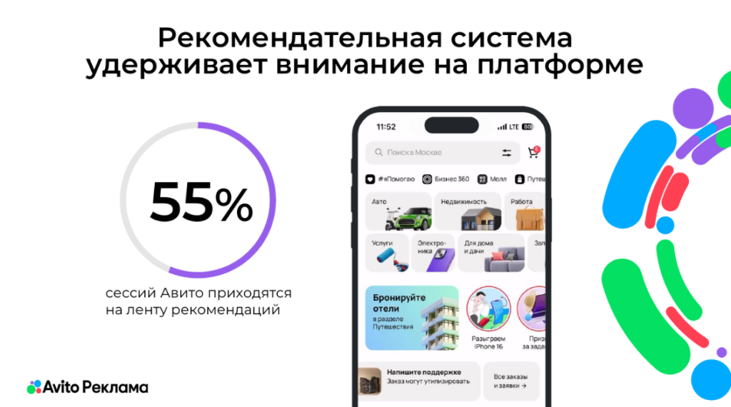 Главная | Блог | Кейсы | Е-коммерс | Повысили средний чек на 46%: технологические инструменты Авито для бизнеса и агентствПовысили средний чек на 46%: технологические инструменты Авито для бизнеса и агентств 27 октября 2025 10 мин на чтение 21 нейросети классифайды нейросети классифайды Нина ОпалькоСтарший редактор Calltouch Содержание Нет времени читать? Агентский бизнес все чаще сталкивается с трудностями в привлечении и удержании клиентов. Ключевая проблема заключается в росте числа конкурентов. Но далеко не все они знают о простом инструменте для увеличения прибыли, который лежит буквально под боком.Многие агентства уже давно открыли для себя Авито как возможность для роста. Например, в сентябре 2025 года число агентств, которые обладают нужной экспертизой по работе на площадке, выросло на 236% год к году. О предпосылках позитивной динамики рассказал Руководитель отдела агентского и партнерского каналов продаж Авито — Николай Сентюрин. Преимуществами Авито для агентского бизнеса он поделился на ежегодной конференции Callday.Agency 2025. Обзор аудитории АвитоЕжемесячно площадка собирает 72 млн пользователей со всей России. Это люди, которые приходят на площадку с намерением совершить сделку. Они могут совершать покупки в самых разных направлениях бизнеса, среди которых: товары,услуги,недвижимость,авто,работа.Вовлекающие инструменты Авито В среднем пользователь проводит на Авито 87 минут в месяц. Достичь такого результата удается за счет технологий , например, рекомендательной системы или видеоленты.Доступность для пользователейДавно прошли времена, когда пользователи искали необходимый товар через классические поисковики. Сейчас тренд на поиск на площадках электронной коммерции.На Авито можно найти практически всё, что разрешено законодательством. Специалисты площадки непрерывно работают для упрощения пути пользователя, а также для повышения доверия аудитории. Большой упор делают на качество отзывов, чтобы пользователи могли действительно им доверять. Проводят работу над полным циклом сделки. Все это позволяет предоставить пользователю единое окно, в котором он может решить свою задачу за пару кликов по экрану и не совершать при этом лишних действий — переключаться между разными интерфейсами, разбираться в работе каждого из них. Пользователю достаточно одного-двух раз успешного решения своих задач на площадке, чтобы осознать ее ценность и доверять ей. Дальше он вовлекается и за поиском решений приходит именно сюда. Прироста на 45% в количестве посещений главной страницы достигли за счет учета разных сценариев использования площадки. Кому-то удобно искать через поиск, кто-то идет в рубрикатор, а кому-то интереснее бродить по ленте рекомендаций. При этом, главная цель — не развлечение, а покупка.Особенность площадки — в кросскатегорийности, что принципиально отличает ее от другого e-commerce. Например, человек, нашедший квартиру в аренду на долгий срок, может вернуться сюда, чтобы приобрести игровую приставку, а затем прийти для поиска работы. Кросскатегорийный поиск на платформе может происходить одномоментно, поскольку касается разных сфер жизни. Как рекомендации помогают продвигаться на АвитоСпециальные рекомендательные технологии Авито обезличенно оценивают поведение пользователей на площадке и предлагают наиболее реле