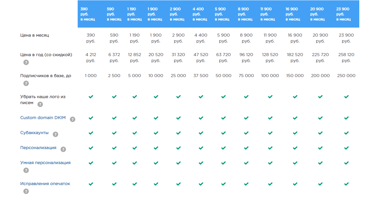 Главная | Блог | Темы | Маркетинг | 10 лучших сервисов для рассылки писем на email в 2024 году10 лучших сервисов для рассылки писем на email в 2024 году 14 мая 2023 18 мин на чтение 23 344 Нина ОпалькоСтарший редактор Calltouch Содержание Нет времени читать? Email-рассылка ― базовый инструмент маркетолога. Это один из первых методов продвижения в интернете, и он работает до сих пор. Но теперь оформить сообщение привлекательно легче, чем 10 лет назад: сегодня есть сервисы, которые делают рекламу красочной и запоминающейся. Чтобы разобраться в этих сервисах, рассмотрим лучшие платформы для рассылки писем на email и разберем их функционал. Академия CalltouchКак подготовить идеальное письмо для email-рассылкиВыбирайте юнит и смотрите. Все просто и прозрачно, без вступительных экзаменов и встроенных покупок. ПодробнееUniSenderЭто один из наиболее востребованных российских сервисов рассылок. В конструкторе письма создаются за 15 минут. В месяц через платформу отправляют 1,5 млрд писем. Возможности:встроенный конструктор писем;100 стандартных шаблонов, а элементы можно менять и сохранять отдельные части;в письмо добавляется видео и анимация, чтобы привлечь внимание;есть блоки с технологией АМР ― пользователь сможет перемещать отдельные части письма и листать карусель с изображениями;есть встроенные формы подписки, чтобы собирать клиентскую базу;за счет встроенной аналитики доступны метрики рассылки: проценты открытий, переходов, жалоб и блокировок.Тарифы:Свободный — бесплатно. Базовый функционал, отправка до 1500 писем. Лайт ― от 588 руб. в месяц. Неограниченное количество писем, но стоимость повышается, если контактов больше 1000. Стандарт ― от 896 руб. в месяц. Есть встроенные рекомендации по email рассылке, чтобы письма не попадали в бан. Если контактов больше 1000, то цена повышается.Персональный ― от 30 000 руб. Чтобы подключить тариф, нужно оставить заявку. Окончательную стоимость рассчитает менеджер. Плюсы:есть сегментация аудитории по региону, полу, возрасту;письмо можно персонализировать, изменив имя или организацию, чтобы подчеркнуть значимость клиента;доступны настройки триггерной переписки: сервис будет отправлять письмо в ответ на заданное действие пользователя;сервис интегрируется с Яндекс Метрикой и Google Analytics.Минус:в бесплатном тарифе ограниченный функционал.Mail 365Это еще один российский сервис для рассылки писем. Он отправляет 120 000 писем в час на Яндекс, Mail.Ru, Rambler и Gmail. Подойдет компаниям, у которых еще нет клиентской базы и которые только планируют ее собрать.Возможности сервиса рассылки email:есть встроенная форма для сбора данных клиентов;в шаблоне можно менять имя и пол получателя;интегрируется с Битрикс и UMI.CMS;есть встроенная аналитика, которая считает клики и открытие писем.работает по API.Тариф рассчитывается индивидуально, в зависимости от количества отправленных писем. К примеру, чтобы отправить сообщения 1000 пользователям, вы заплатите 390 руб. в месяц. Если у вас до 2000 клиентов, то компании подойдет бесплатная версия, но в ней не будет техподдержки. Плюсы:есть функция отправки писем по заданному сценарию;можно импортировать данные о пользователях в любом формате;есть внутреннее тестирование писем для выявления неточностей;умные фильтры умеют исправлять элементарные ошибки. Минусы:в бесплатном тарифе базу нельзя подгрузить, она должна быть собрана через 
