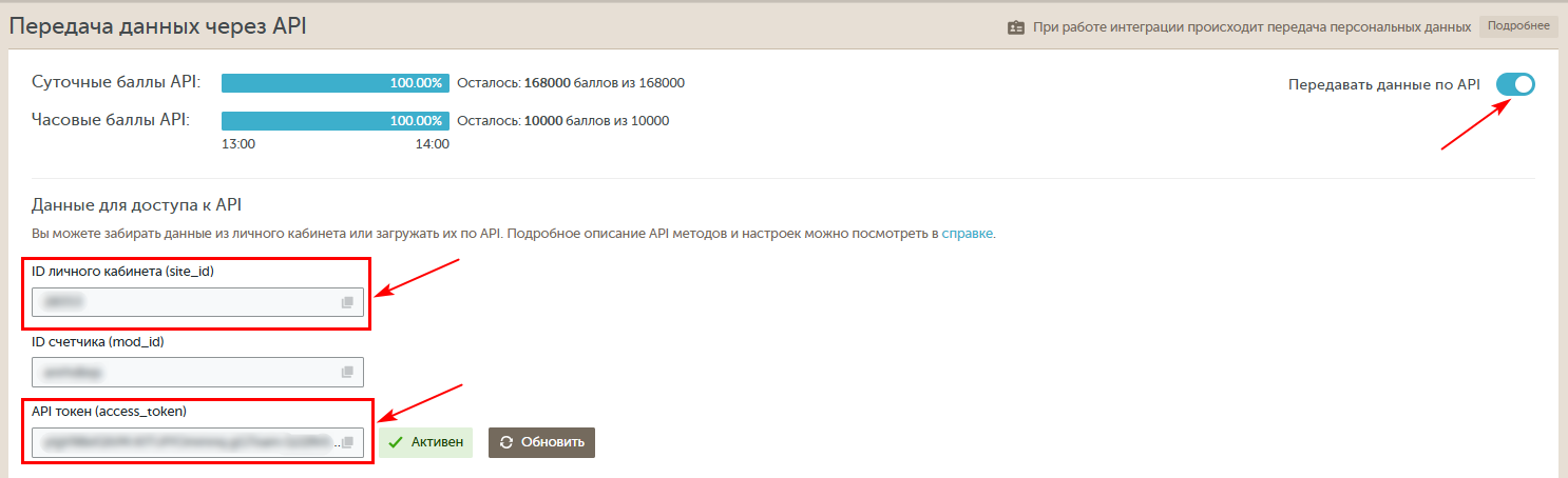 - Получить в личном кабинете Calltouch ID Вашего личного кабинета и Токен.