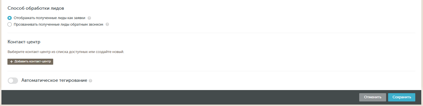 - Выбор или настройка нового контакт-центра для заявок;