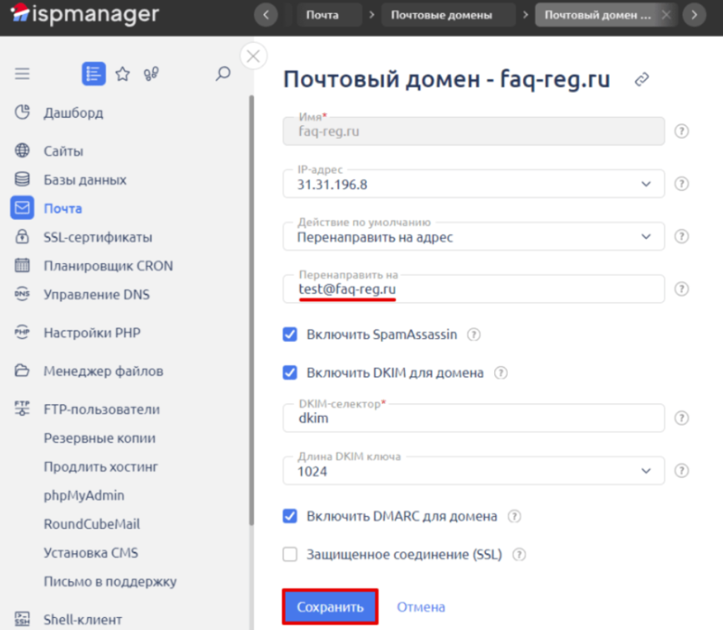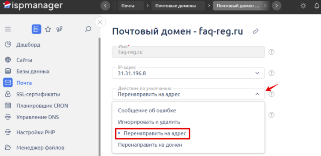 В инструкции представлена настройка в панели управления ispmanager. Данная настройка также доступна и для панелей cPanel и Plesk. Подробная информация по настройкам для всех панелей представлена в базе знаний в инструкции от рег.ру.