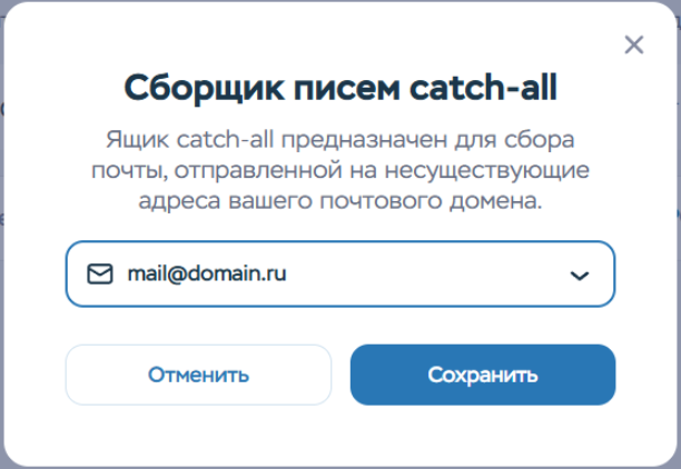 Catch-all — это функция почтового домена, которая позволяет принимать письма на несуществующие email-адреса домена и автоматически направлять их на указанный почтовый ящик.