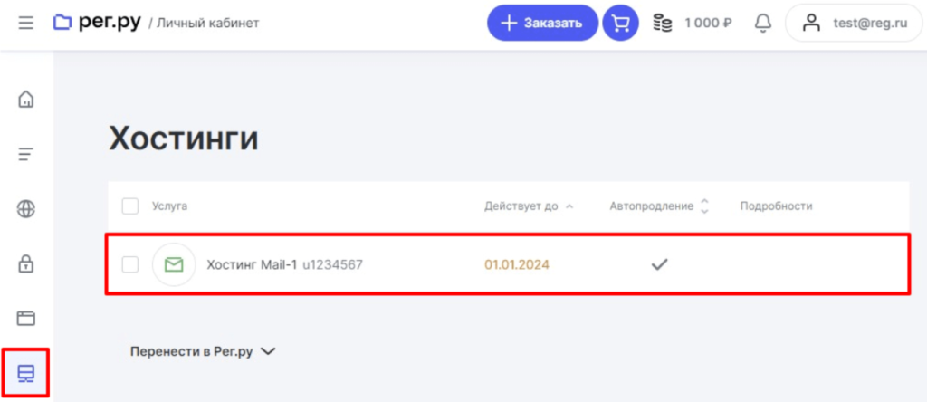 В личном кабинете рег.ру откройте раздел Хостинг;