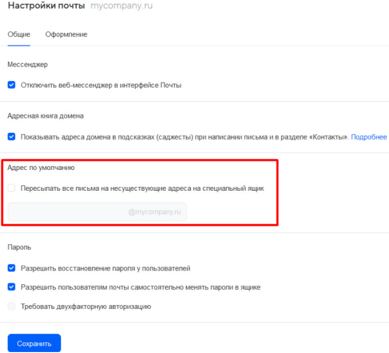 В поле «Перенаправить на» укажите email, на который будет перенаправляться вся почта с несуществующих адресов. Затем нажмите Сохранить: