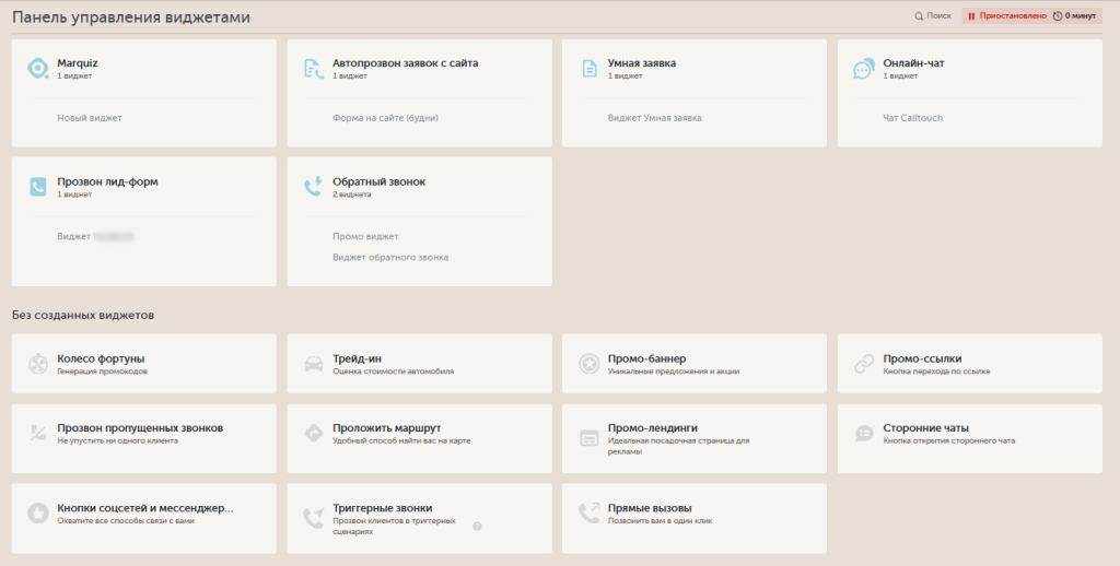 Панель управления виджетами — инструмент, который позволяет видеть все настроенные в кабинете виджеты в одном окне.