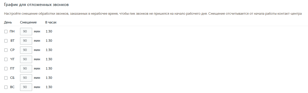 В данном пункте вы можете настроить время, с которого ваши менеджеры будут готовы принять вызовы по отложенным звонкам.