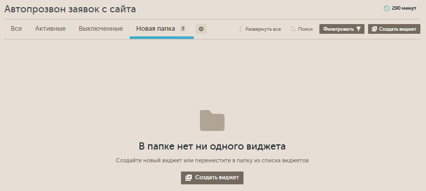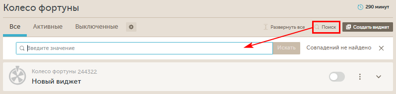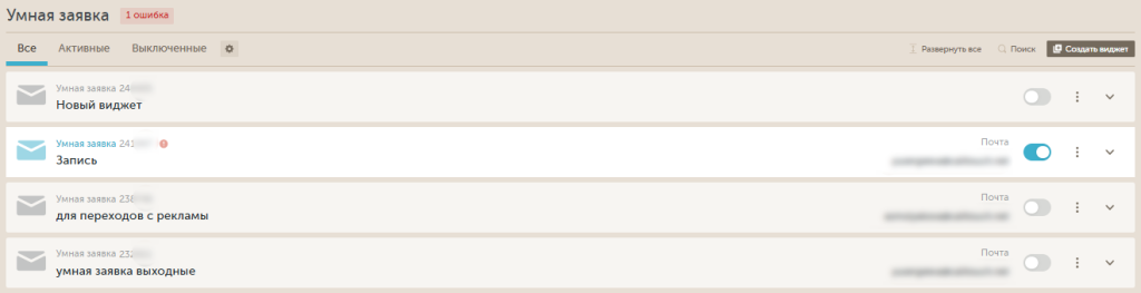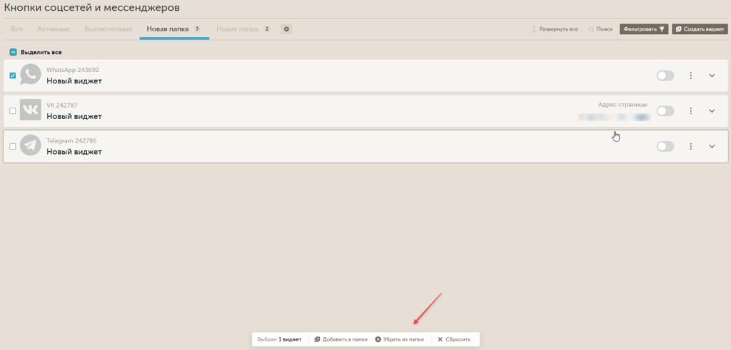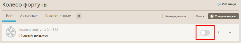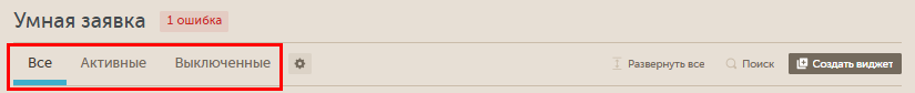 По умолчанию выбрана таба "Все". При клике на "Активные" останутся только активные виджеты.