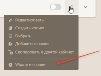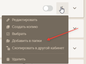 Для каждой созданной папки доступны следующие действия: