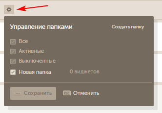 При клике на "Выключенные", список будет состоять только из деактивированных виджетов.