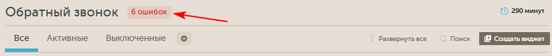 В случае наличии ошибок справа от названия раздела отображается счетчик с количеством ошибок. При клике на него в соседней вкладке откроется раздел Ошибки виджетов:
