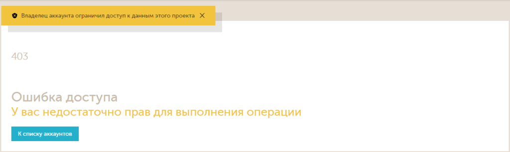 При включении опции «Ограничить доступ к данным этого проекта» сотрудникам Calltouch будут недоступны настройки и статистика вашего сайта. При попытке зайти в ваш личный кабинет, сотрудник Calltouch увидит следующее уведомление:
