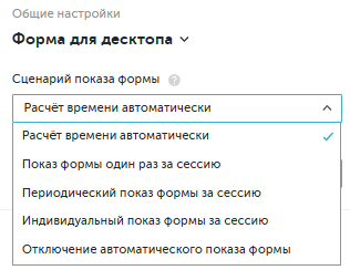 - Индивидуальный показ формы за сессию — позволяет настроить показы в разное время от 1 до 5 раз за сессию.