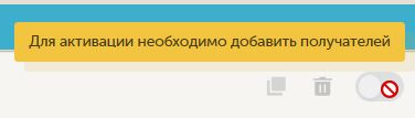 Для активации рассылки необходимо заполнить информацию о получателях и отделов, если они настроены.