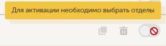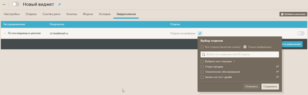 - Выбрать все текущие — работает как мастер чекбокс: уведомления будут отправляться по всем отделам, существующим на момент настройки.