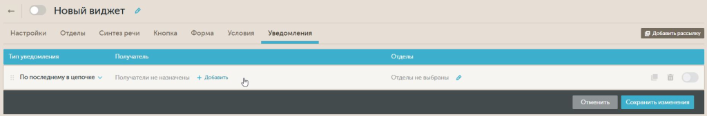 Конверсия / создавайте или используете ранее созданный виджет / переходите в настройки и выбирайте таб “Уведомления”.