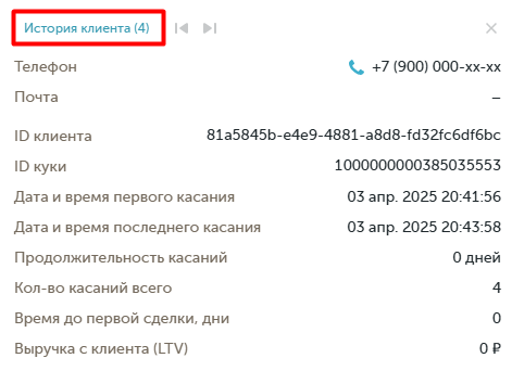 Таким образом, история клиента поможет вам детально анализировать всю цепочку касаний клиента, от его захода на сайт до продажи.